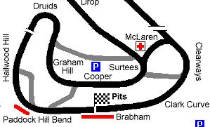 Sprint VenuesHere is a list of venues that are used by some of the speed championships run in the South East of England. As you can see some of these venues are nowhere near the South East! What follows are my personal views on the venues in question, except for the asterisked venues which I have not visited and where I have used a description from the Sevenoaks & District Motor Club Speed Events year book. Often people are nervous about damaging their car so I have made a note if a venue is notorious for accidents, or whether it is very safe. Abingdon nr Oxford, Oxfordshire Abingdon is unique in that the event has 2 separate courses. In the morning half the entrants tackle the Bentley course while the others do the Abingdon course. The Bentley course is laid out on the main runway. It consists of 4 longish straights connected by 2 90 degree bends, a hairpin and 2 chicanes. Each straight is about 300 yards long so powerful cars can reach 3 figure speeds. The Abingdon course is more curvy but again it is a real power course. It is pretty much flat out for well over 1/4 mile before a chicane slows you right down and leads you back out to a 1/4m straight, round a high speed 90 left and across the finish. Brands Hatch nr Fawkham, Kent Sprints take place on the Indy circuit which is 1.2 miles long. The hire fee is astronomical so the entry fee is high. Even so there is a full entry here. Used once a year in February when the weather can be pretty horrible making the circuit even more demanding. The sprint is usually 2 laps from a standing start. The start is either on Cooper Straight or from the Pit Lane. Paddock bend is far more fearsome when you are driving it than when you are spectating! Click for map (15K) Brighton Speed Trials SussexHeld annually on Madeira Drive, Brighton. The speed trials vary in length from year to year. It is currently 1/4 mile long after a fatal accident on the 1/2 mile course in 1994. Always a big crowd with lots of interesting cars. Being a straight line blast it is very safe in a 'slow' car like a 7 replica. Unlike all the other venues detailed here you need a National A speed licence to compete at Brighton which means no beginners. Castle Combe nr Biddestone, WiltshireThis proper racing circuit hosts sprints on a regular basis. The course starts near the finish line and is less than 1 lap, finishing just after Tower. Very fast venue. The infamous Quarry bend normally claims a few victims at each meeting. Good spectating. Approximately 1.5 miles long. Click for map (20K) Cornbury Park nr Charlbury, OxfordshireThis is an annual event hosted by the Jaguar Drivers Club. The course is best described as being like a hilclimb on the flat. A long straight will see speeds of over 100mph away from the start line before a 90 degree right takes you into a winding section through some trees, over a crest and on to the finish. 1230m long. Crystal Palace SE LondonThis famous venue was host to Grands Prix in the past and Sevenoaks Motor Club organised a sprint for 1997 which should become an annual fixture. The course starts on the old pre-war circuit before a hairpin bend takes you onto the Grand Prix circuit. An artificial chicane slows the action before a long right hander sweeps you into a wooded section and onto the finish straight. Curborough nr Alrewas, W MidlandsMainstay of sprinting in the midlands this purpose built track is very short (900 yds) and very twisty. The surface is also slippery if it is wet. Has a short straight at the finish that features a speed trap. Click for map (18K) Debden nr Saffron Walden, Essex2 sprints a year are held at this challenging military base. From the start line to the first roundabout is nearly 1/3 a mile and is on a continually tightening left hander. Speeds of about 100mph are attainable on this section and you then have the difficulty of slowing to about 20mph for a mini roundabout while having to tighten your line all the time. After coming back along the same road you make a 90 degree left hander onto the main runway which leads to a hairpin bend that takes you through the Go-Kart circuit (watch out for the tyre barriers) followed by a quick squirt down to the finish. Big run-off areas make this a fine venue while also being very technical. One of my favourites and always oversubscribed. 1.1 miles long. Click for map (29K) Goodwood nr Chichester, SussexThe historic circuit that effectively ended the career of Stirling Moss. The fastest circuit in the UK, its 2.4 mile lap will be completed in about 90 seconds from a standing start by a quick 7 replica. Can be tough on engines as quite a few cars are flat out for longish periods on the run to St Mary's and then on the Lavant straight. Despite the high speeds there are not that many accidents here probably due to the big run-off areas. Some sprints use 1 lap and others 2. On a 2 lapper your approach to the first corner (Madgwick) is a lot quicker! Click for map (16K) Harewood * nr Leeds, W YorkshireFound 'up north', where this venue has a huge following for its difficult 1448 metre course. Excellent spectator facilities are provided by an enthusiastic land onwer, and this is a must for any serious hillclimber. Click for map (24K) HMS Daedalus nr Lee-on-Solent, SussexNo, not an aircraft carrier! This is one of those naval bases on land that is called HMS for some strange reason. An annual event that uses perimeter roads and runways. The course has a good mixture of fast sweeping bends and incredibly tight hairpin bends. Longleat WiltshireSituated in the grounds of Longleat House, Wiltshire. The course is 1200 yards long and the first half of it has a very slippery surface - tiny little polished stones in concrete. A challenging right over a crest is followed by a sweeping left hander and a tight hairpin which precedes a rough section of road leading to the finish. Click for map (40K) Lydden nr Shepherdswell, KentAnother real racing circuit near Dover. Spectating is brilliant here a