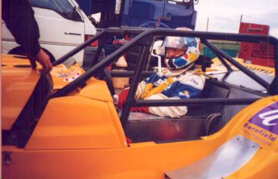 During first practice, Tony nearly proved Andy right by producing a 1:12.35, despite the engine cutting out completely on the back straight (see race report). A much more serious problem became apparent during second practice. The car was handling so well that the cornering forces it was generating caused the near side upper wishbone mounting to break away from the chassis. Most teams would have packed up and gone home at this point, but not DAD Motorsport. Andy got out the MIG welder and proceeded to weld the suspension mounting back on! Mike Smith looked decidedly concerned about having to drive the car in this condition, but the team manager had no doubt at all that the repair was strong enough.